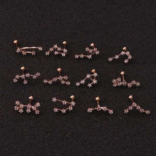 011 - 12 Constellations Star Cartilage 1PC Earring | Non-Allergic Stainless Steel And Copper, Screw Piercing