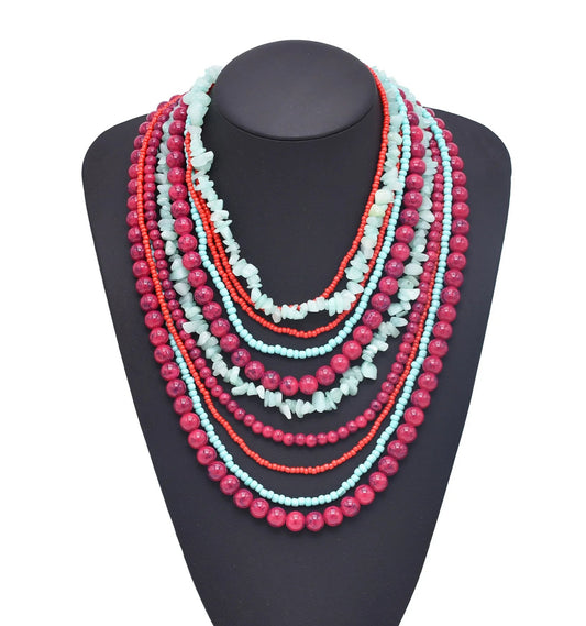 011 - Natural Garnet Multi-Layered Beaded Baroque Necklace