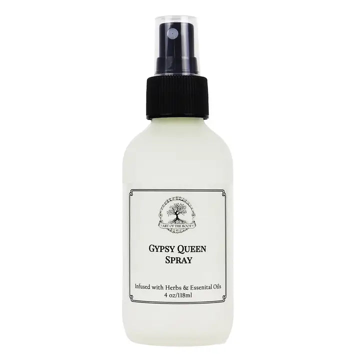 Our Gypsy Queen Body Spray is made to connect you with your inner gypsy. It’s perfect to aid you in your divination and fortunetelling skills and for blessings, inner transformation, self-development, and psychic awareness. Use it for any type of spiritual work and meditation, and when broadening your spiritual horizons. This is an Art of the Root original blend, although the ingredients have been used for centuries, with the three main even mentioned in the Bible. It smells truly divine and comes in a 4 oz. plastic spray bottle.