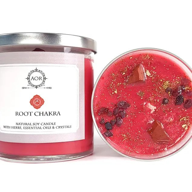 It doesn't stop there… It is topped with red jasper, an earth element, revered for its protective and pain relief properties to allow you to feel free to thrive: Garnet, which has elements to boost energy and vigor and regulate your heart and blood flow, which is vital to your basic needs of life and tied directly to your root chakra. This Root Chakra Candle is a gorgeous, rich red, the color of life, and known to focus your energy and attention outward and forward to allow you to flourish. Re-center and bring yourself back to the earth so you can blaze your own trail with confidence and purpose. Embrace all this Root Chakra Candle has to offer and remember you are a gift to this world!