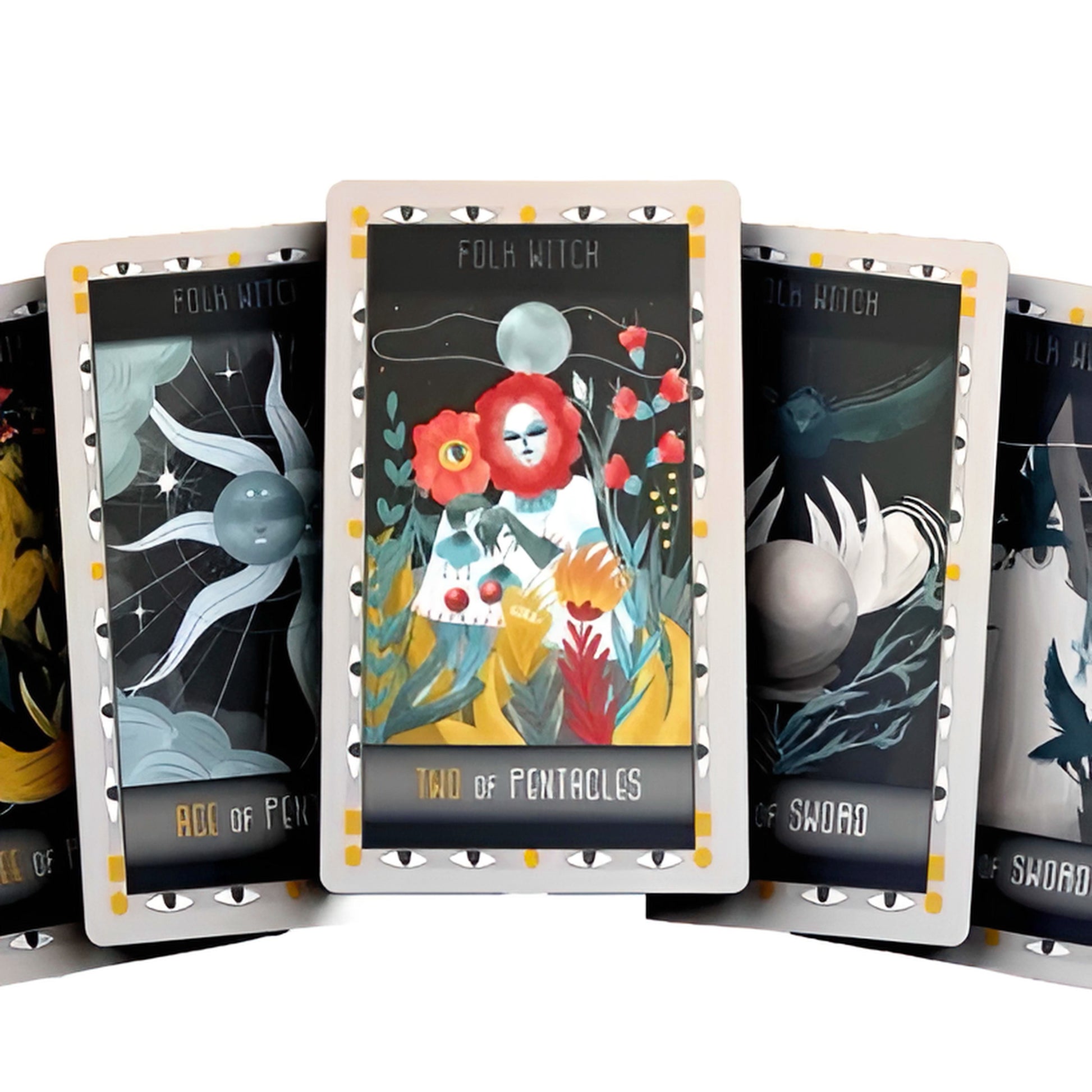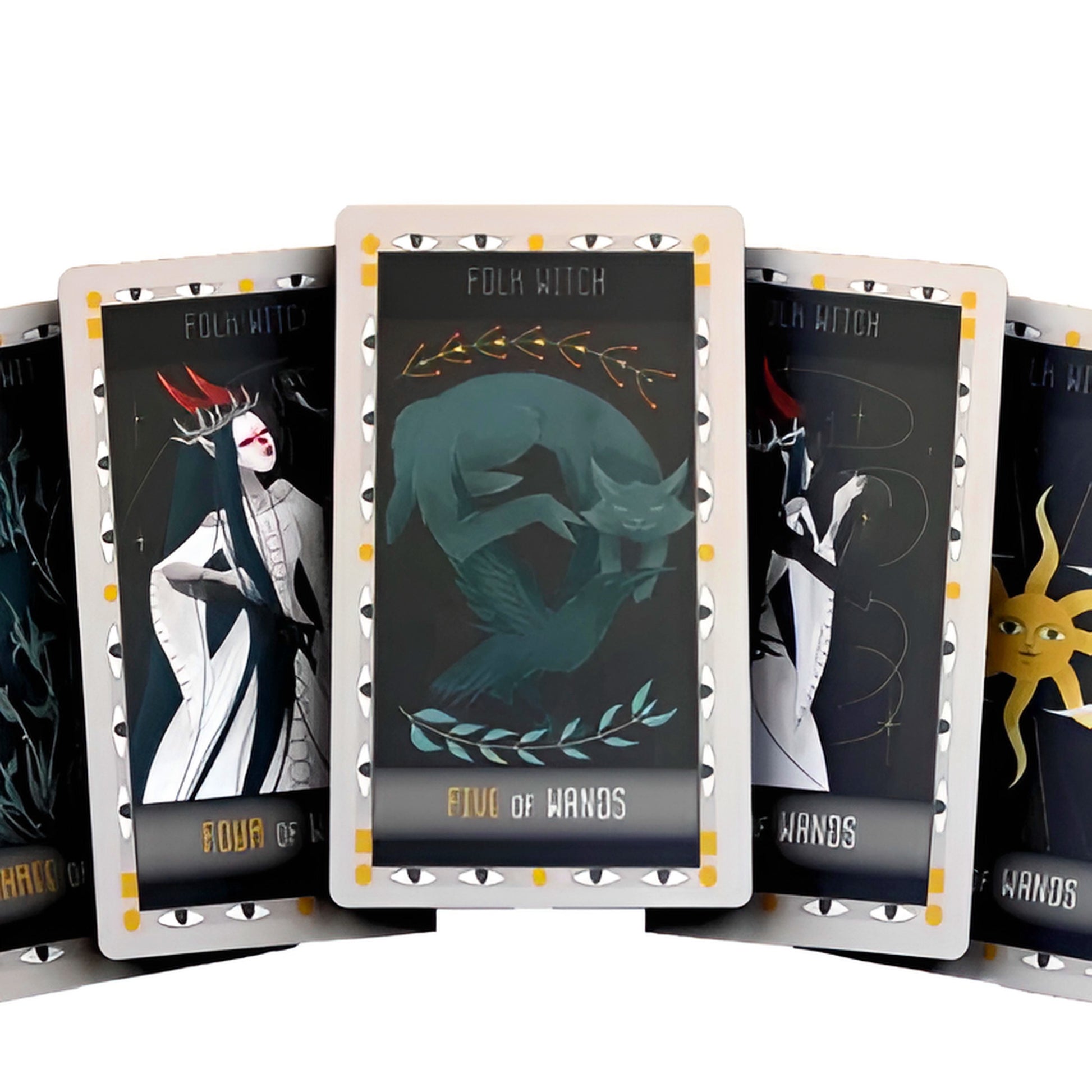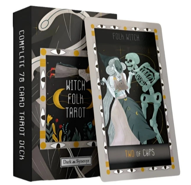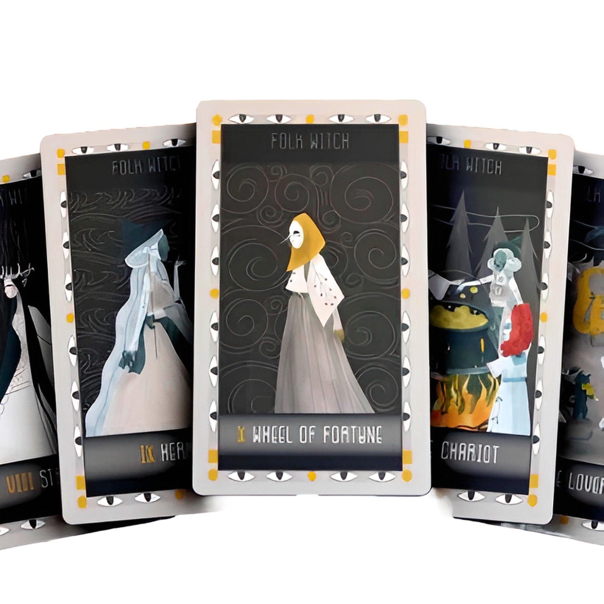 Witch Folk Tarot - An alluring tarot deck and divination tool featuring powerful, delicate, and hauntingly lovely folk witches. This bewitching deck offers Tarot assistance from a delightful witch coven, where a strong sense of community and family radiates as they bond over cauldrons and dance in nature.