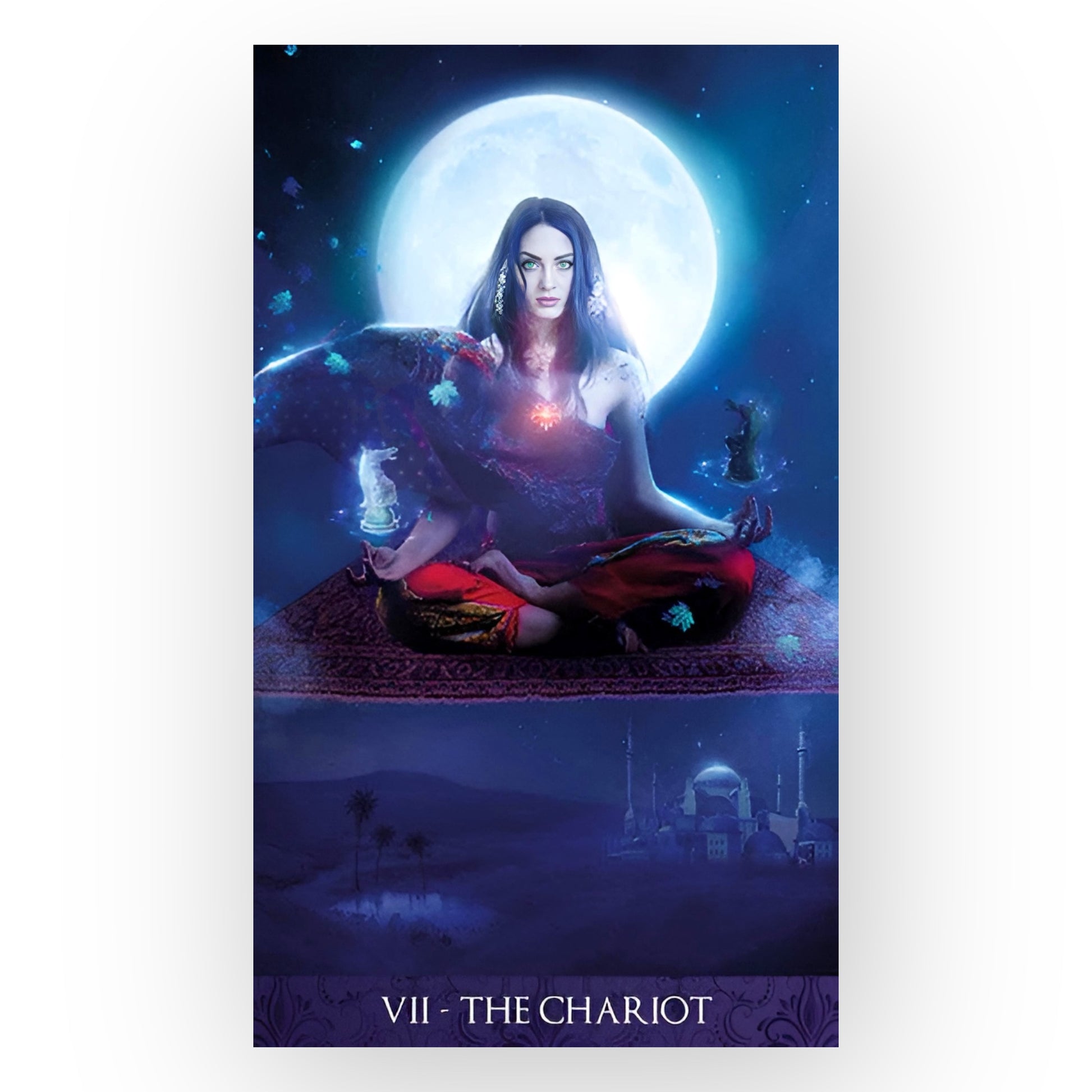 Woven from the nighttime aether by Carole-Anne Eschenazi and the world renowned French illustrator Alexandra Bach, this incredibly beautiful deck embodies shadowy intrigue and feminine energy. Meaning "the night" in French, Tarot de la Nuit is a journey into powerful darkness under the moonlight of glamour and magic. Each Arcana is a work of art, empowering you to find the answers you seek.