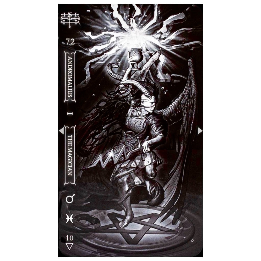 Goetia is a deck about Demons, extracted from the esoteric lore of the Lesser Key of Salomon, but seen in a modern psychological way. As darkness is none other than a path to light, the unconscious is just a mirror of the conscious.