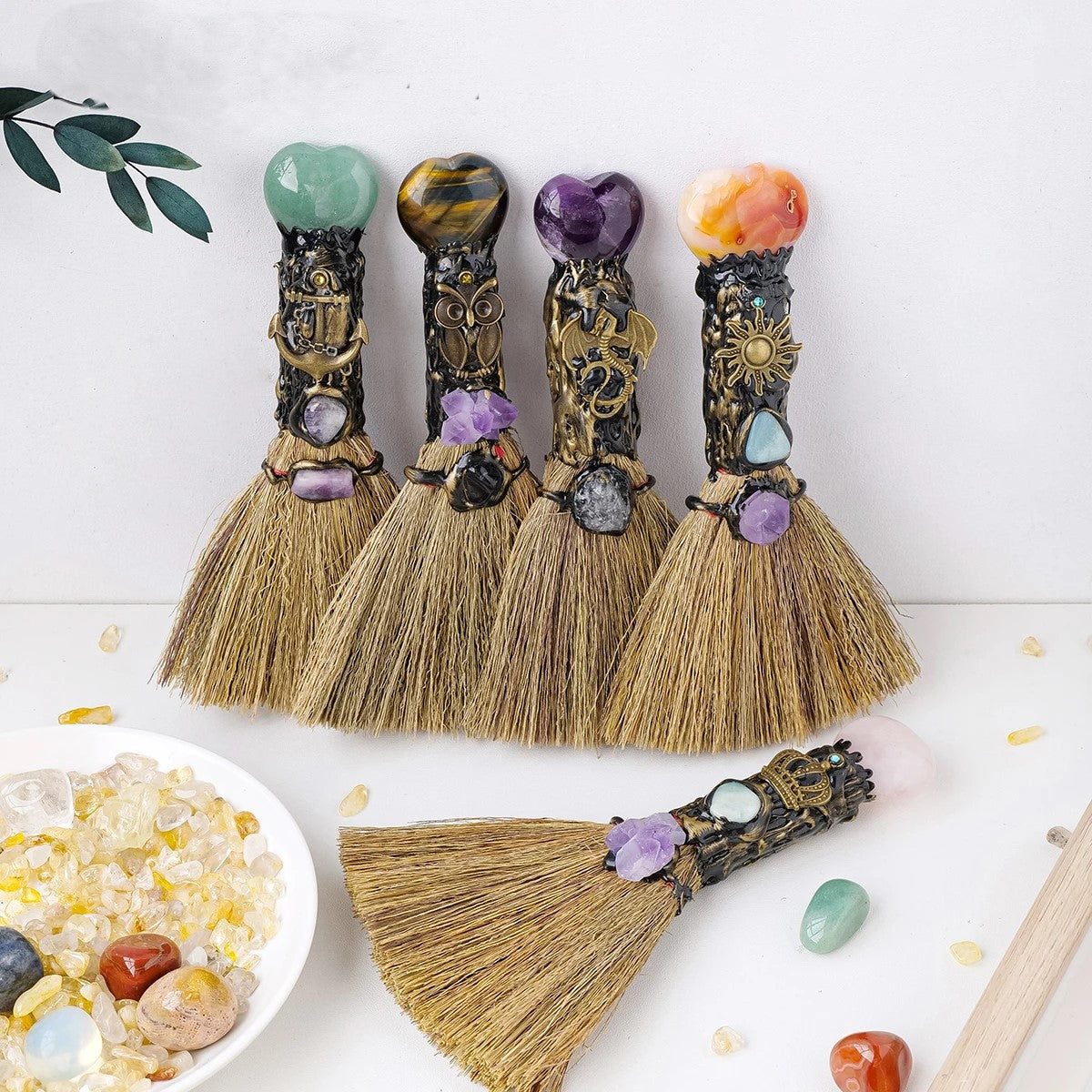 002 - Magick Witchy Altar Broom w/ Heart-Shaped Crystal