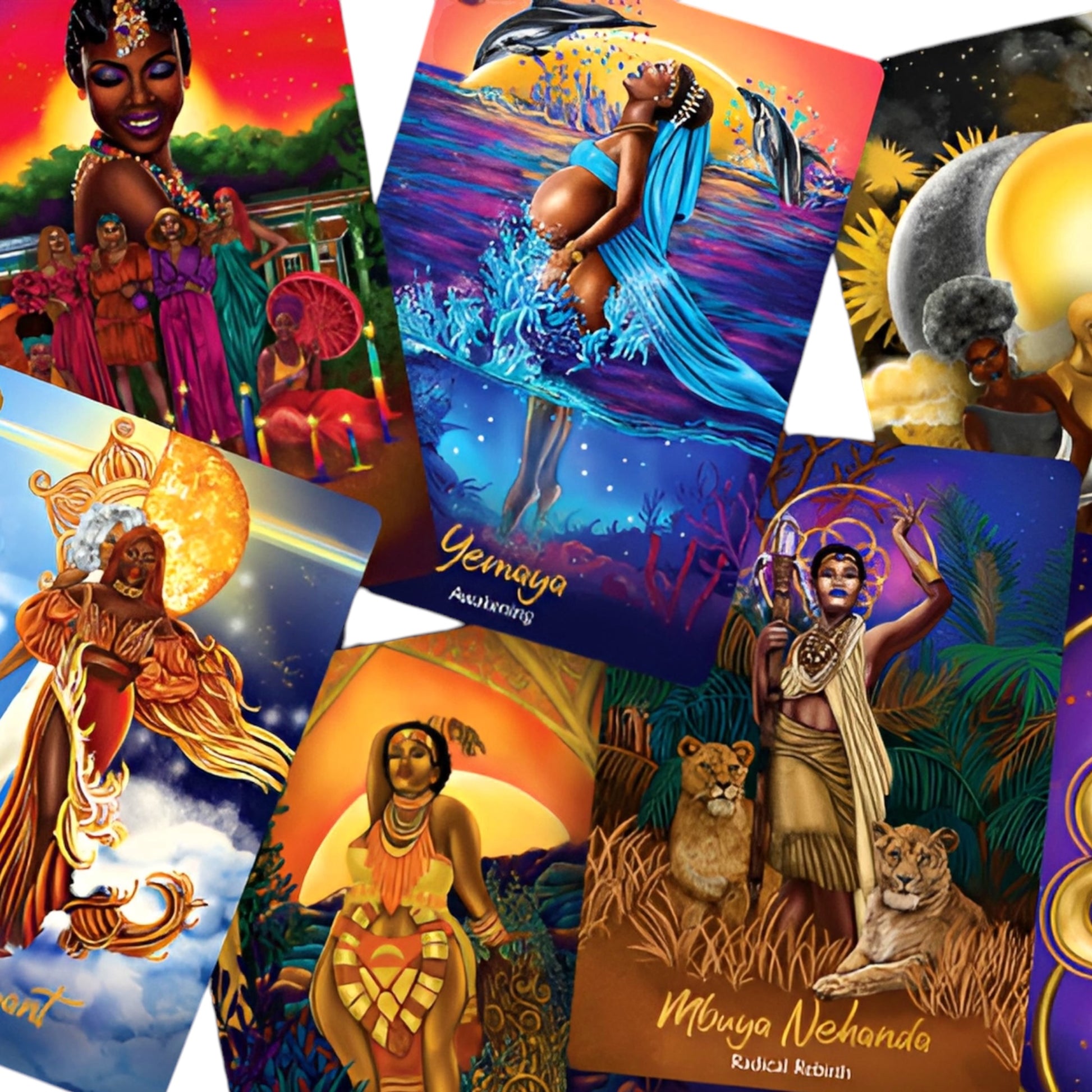 A breathtakingly beautiful oracle deck of 44 African goddesses, spirits, queens, and ancestors from many powerful peoples and pantheons — reaching from the continent of Africa and throughout the diaspora by intuitive spiritual teacher Abiola Abrams.