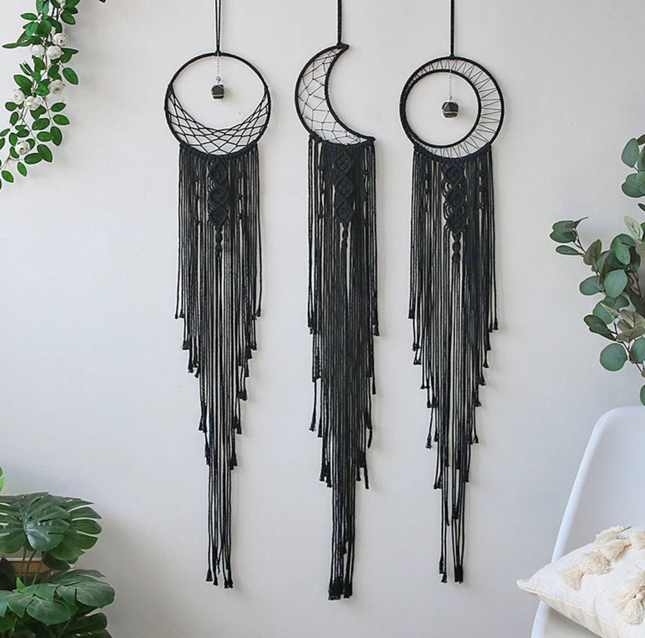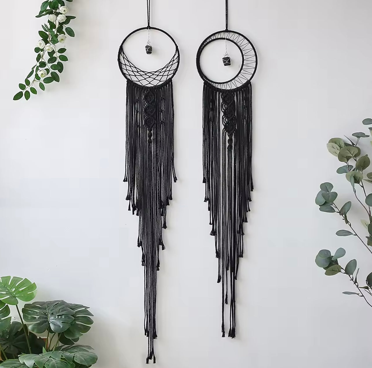 009 - Macrame Black Sun Moon Star Dreamcatcher