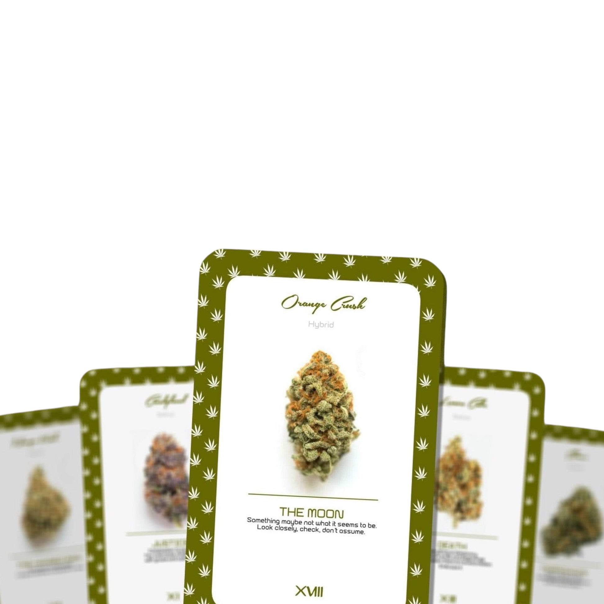 The 22 major arcana cards in this innovative Tarot deck are represented by 22 amazing cannabis strains, each carefully selected to align with the traditional symbolism and energy of the classic Major Arcana Tarot Cards. This deck introduces a new creation and an exciting design that brings together the world of Tarot and the diverse and rich landscape of cannabis strains.