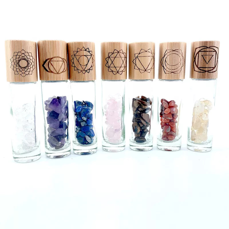 Refillable Rollerball Bottles with Natural Chakra Gemstones