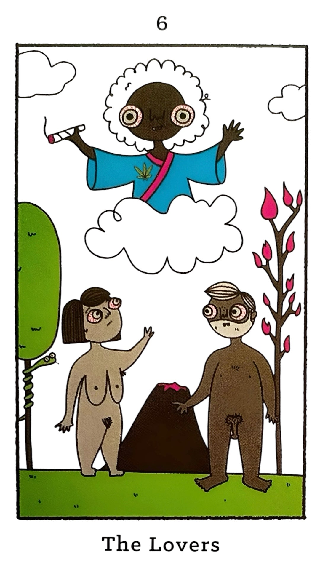 Four-Twenty Tarot deck is a unique blend of traditional tarot wisdom with a laid-back, stoner vibe. Designed for marijuana enthusiasts, this quirky and light-hearted tarot deck features adorable, bloodshot, red eyes in each card, adding a touch of charm to your readings.