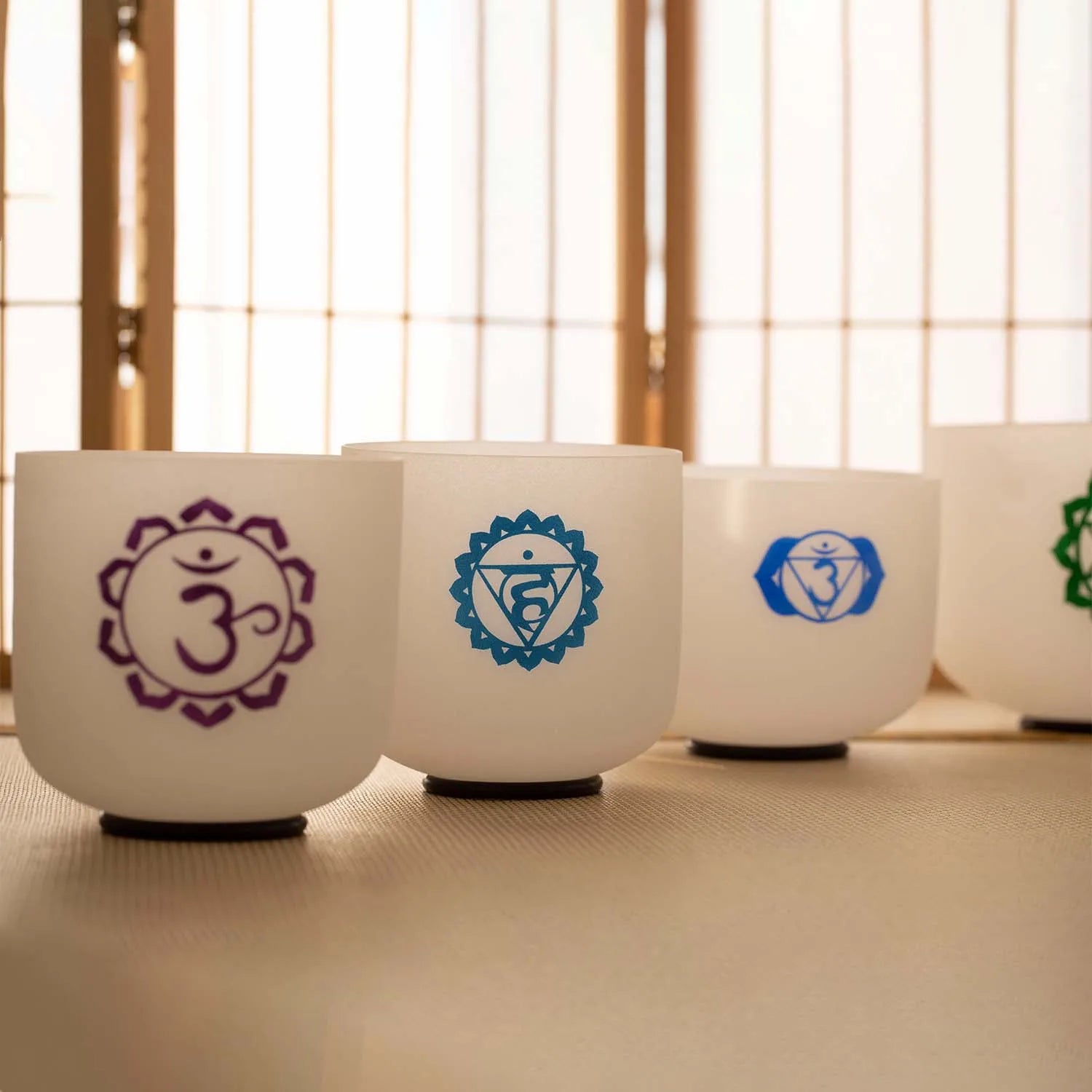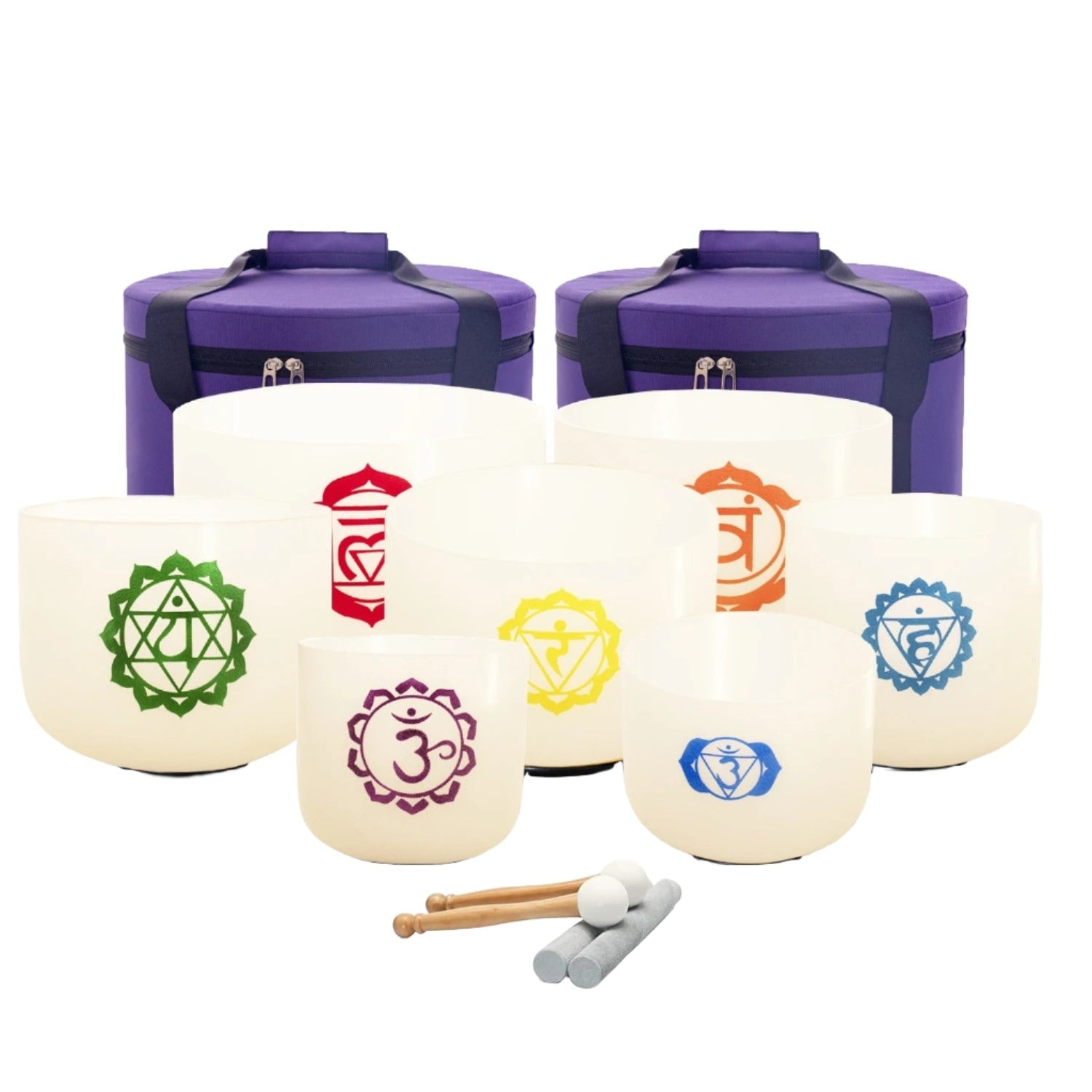 012 - 7 Chakras Tuned Crystal Quartz Singing Bowl 7pc Set for Balancing and Harmony