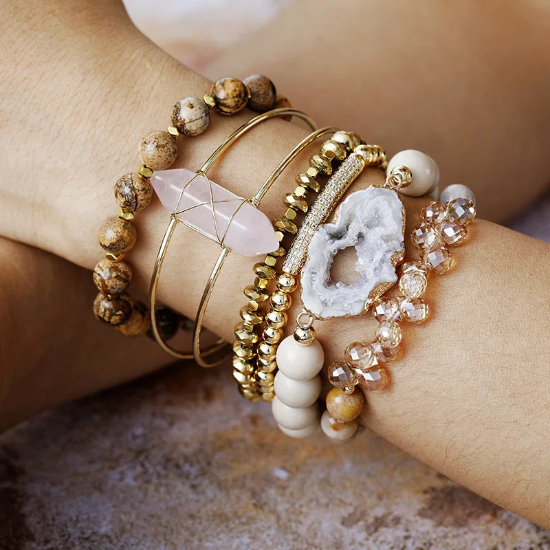 011 - Natural Crystal Druzy Beaded Bracelet and Bangle Set