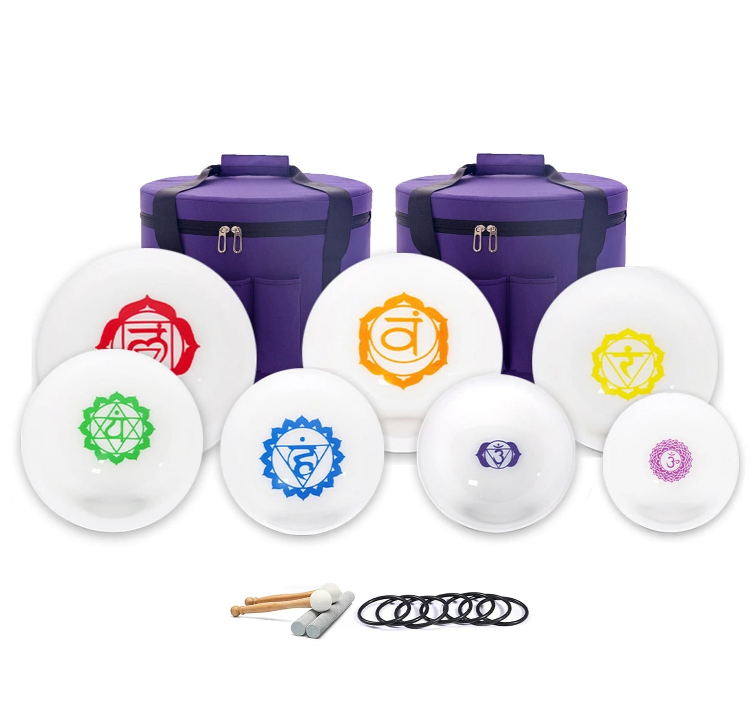 012 - 7 Chakra Crystal Quartz Singing Bowls Set For Channeling