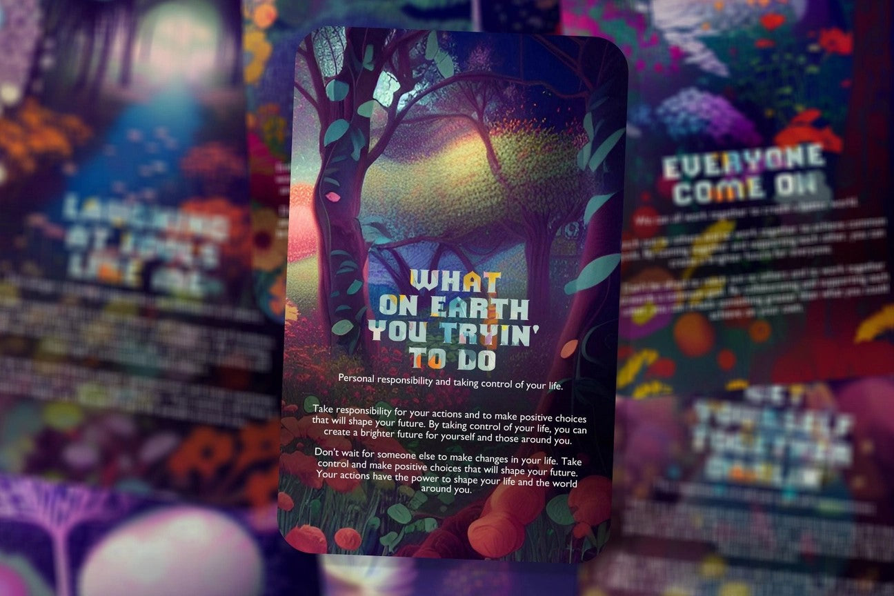The messages in the cards are designed to help you recognize the impact of your thoughts and actions on the world around you, and to inspire you to make positive changes that will benefit yourself and others.