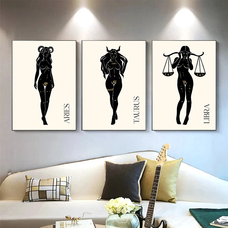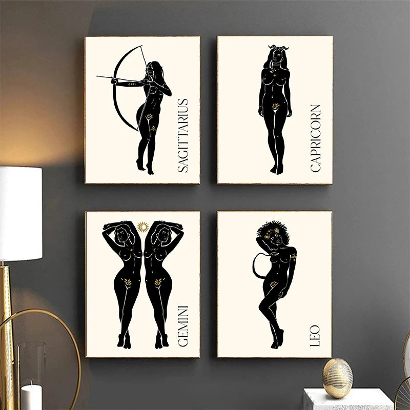 009 - Minimalist Vintage Lady Zodiac Canvas Print Wall Art