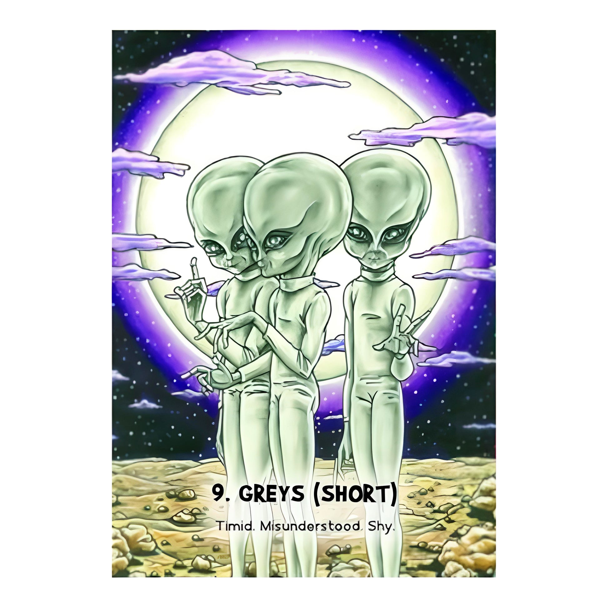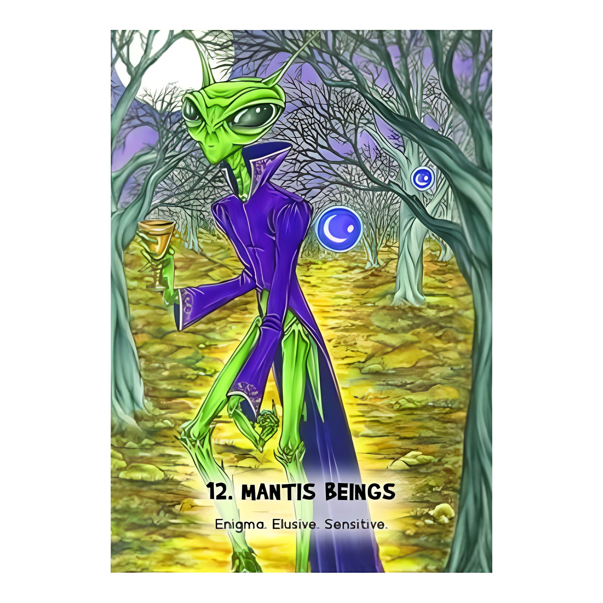 The major theme is centered around the timeless archetypal forces that transcend through the cosmos and fractal into the human psyche. The vast array of aliens is immense, multi-layered, and even at times convoluted. They keep a mindful eye on us individually and collectively. They observe our successes and our failures, and everything in between. Open your eyes, stretch your insight into broader horizons, and assist you with everyday concerns. May you welcome the ancient Sky Beings that are forever watching over you.