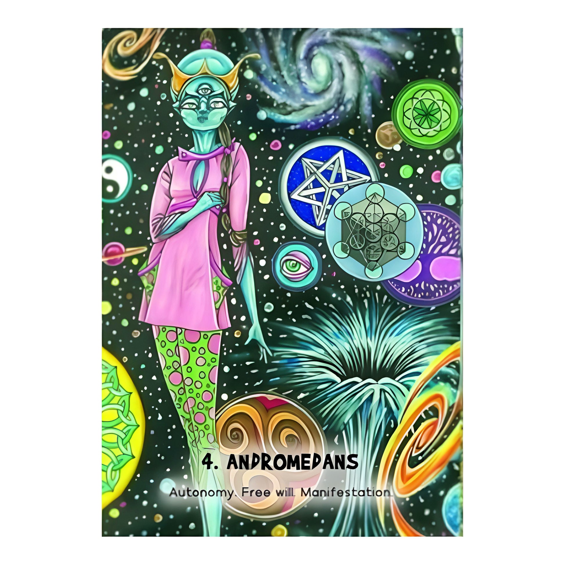 This deck is designed and intended as a generic guideline for extra-terrestrial species. Each card is a symbolic and representational conduit for a specific archetype, all connected from micro to macro.