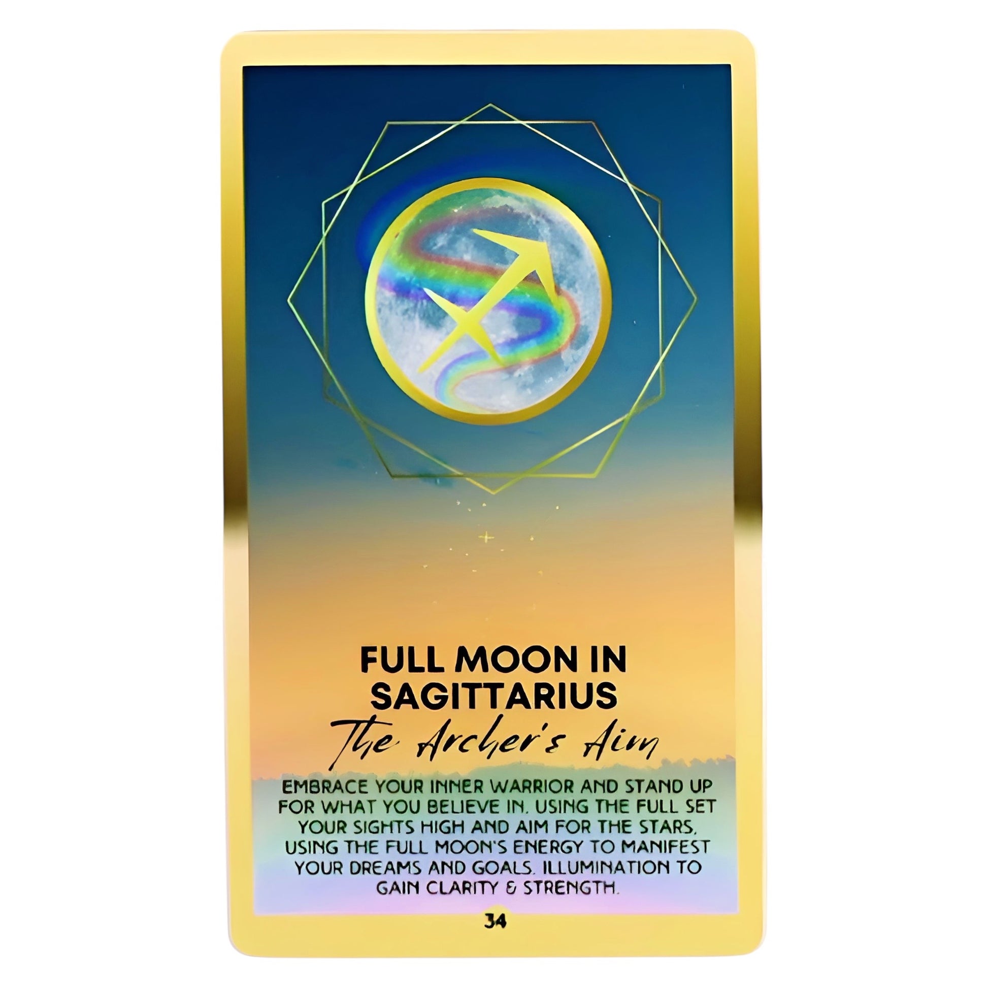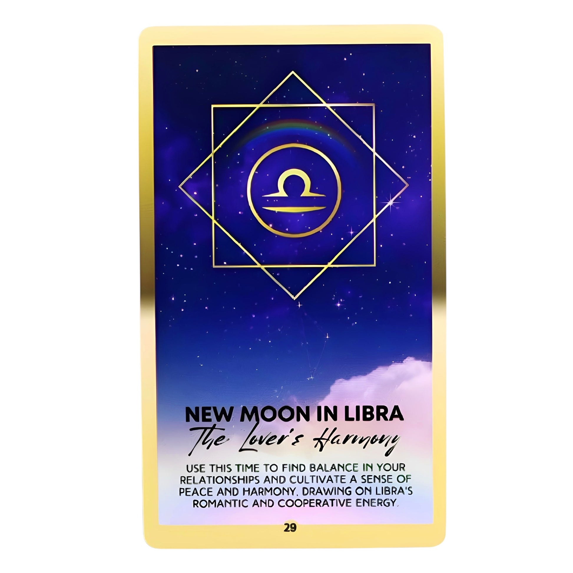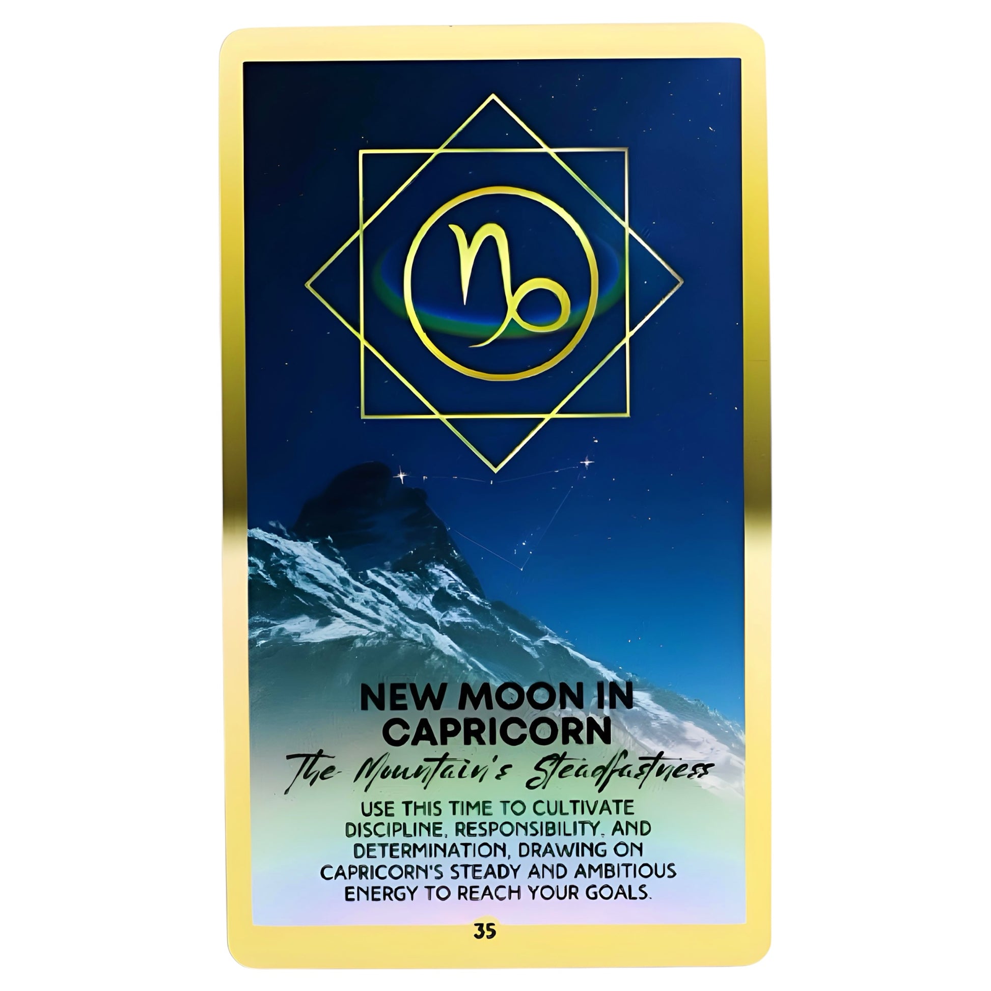 Each card features artwork that captures the essence of the moon phase and its meaning. A phrase and description will help deepen your intuition and add to your divination practice.