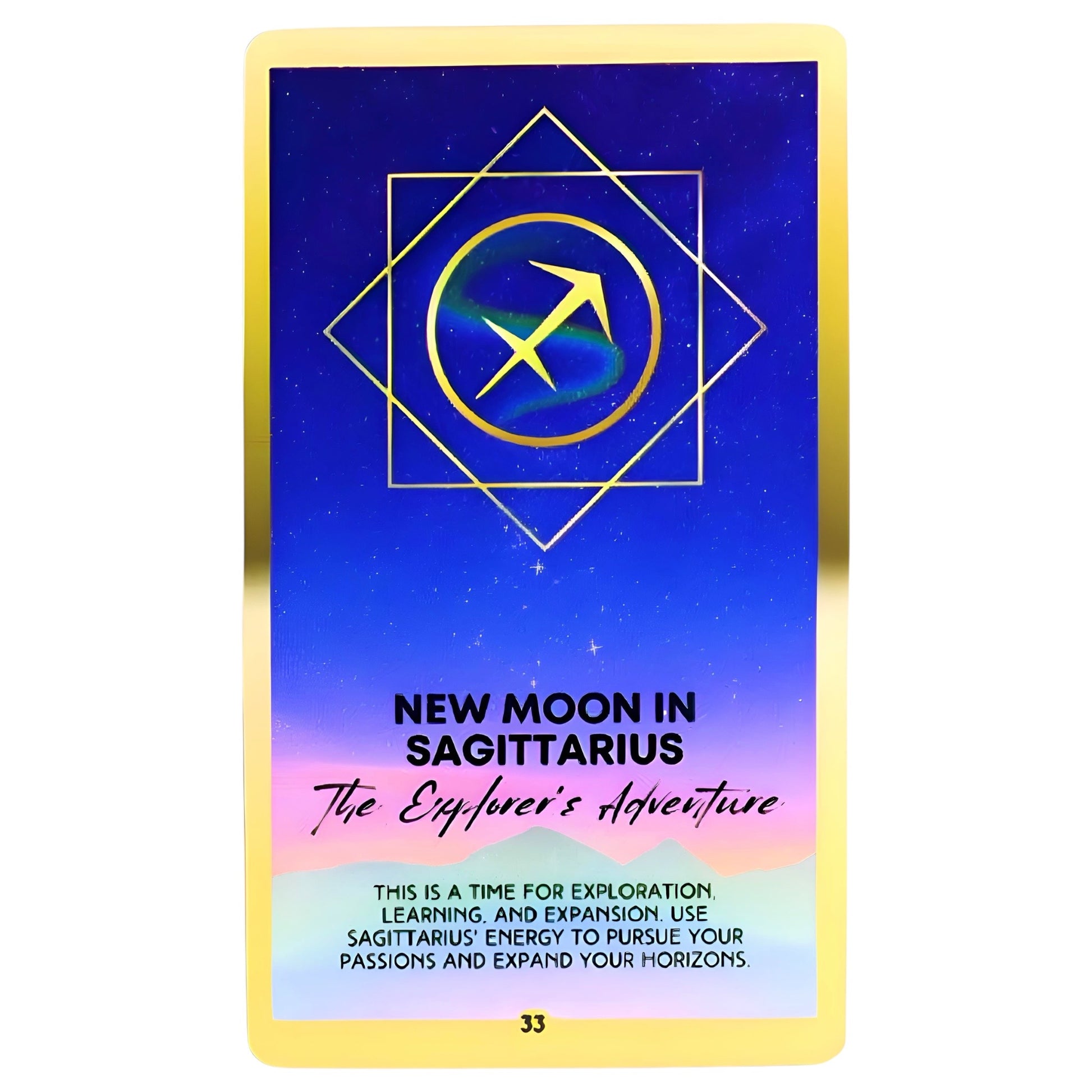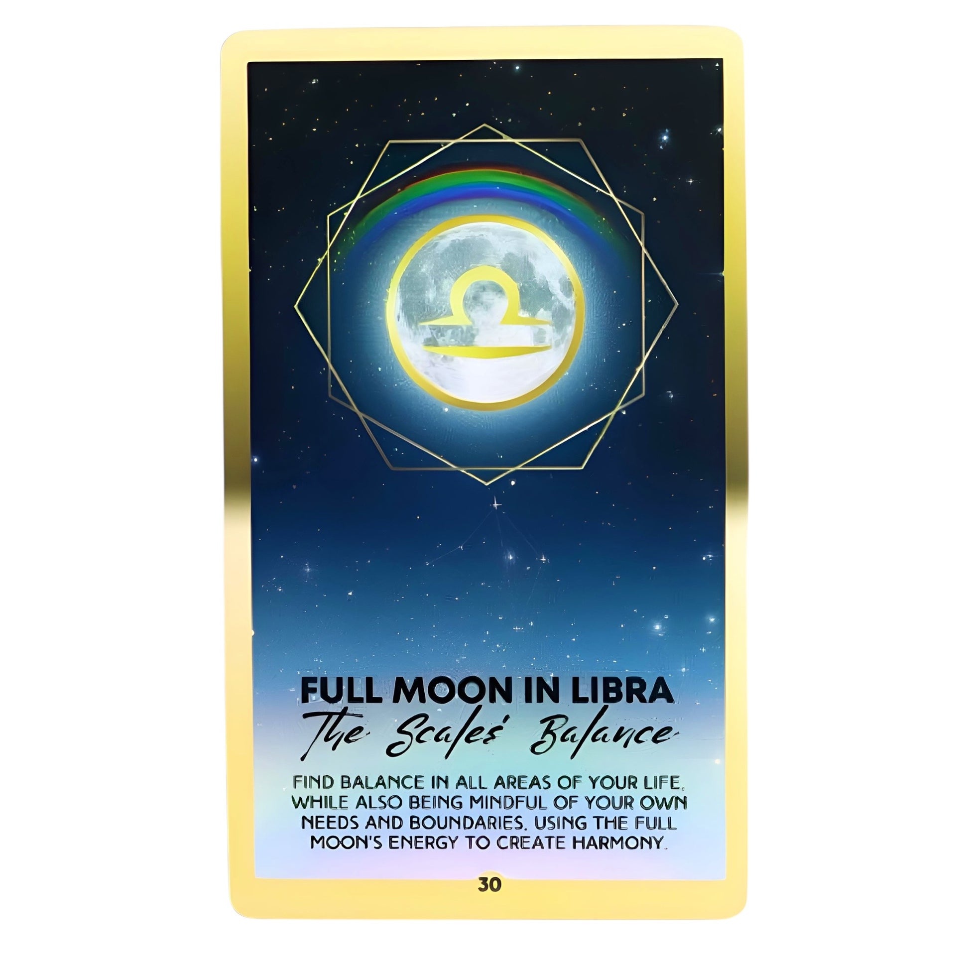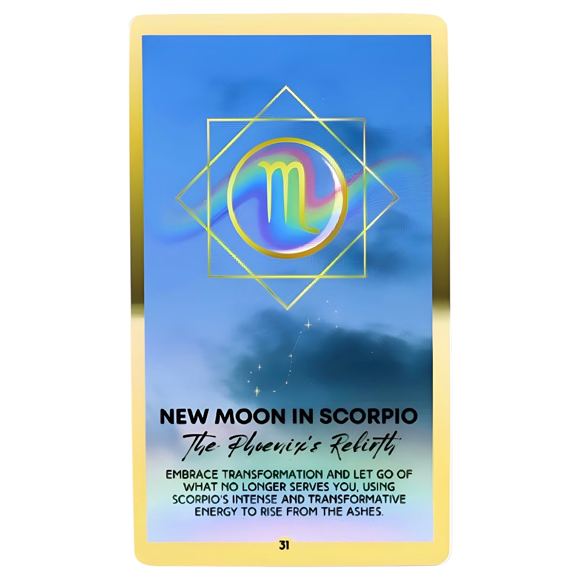 Each card features artwork that captures the essence of the moon phase and its meaning. A phrase and description will help deepen your intuition and add to your divination practice.