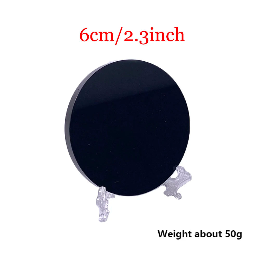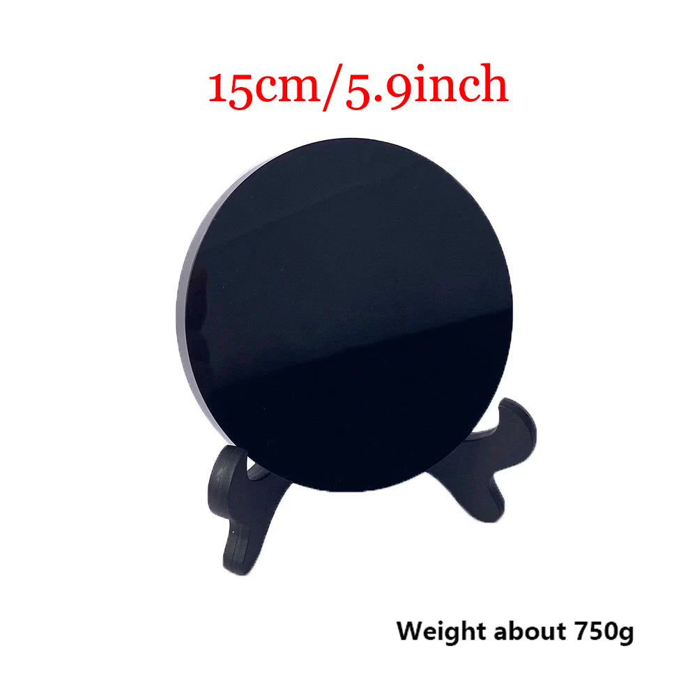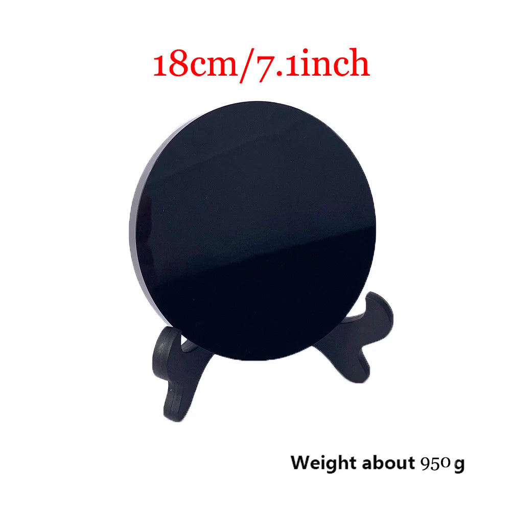 002 - High Quality Natural Black Obsidian Scrying Mirror Mirror w/ Stand