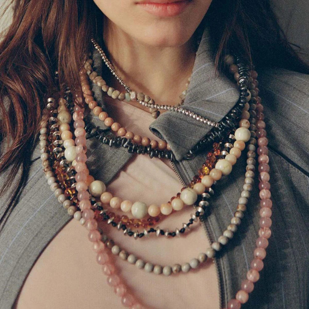 011 - Natural Garnet Multi-Layered Beaded Baroque Necklace