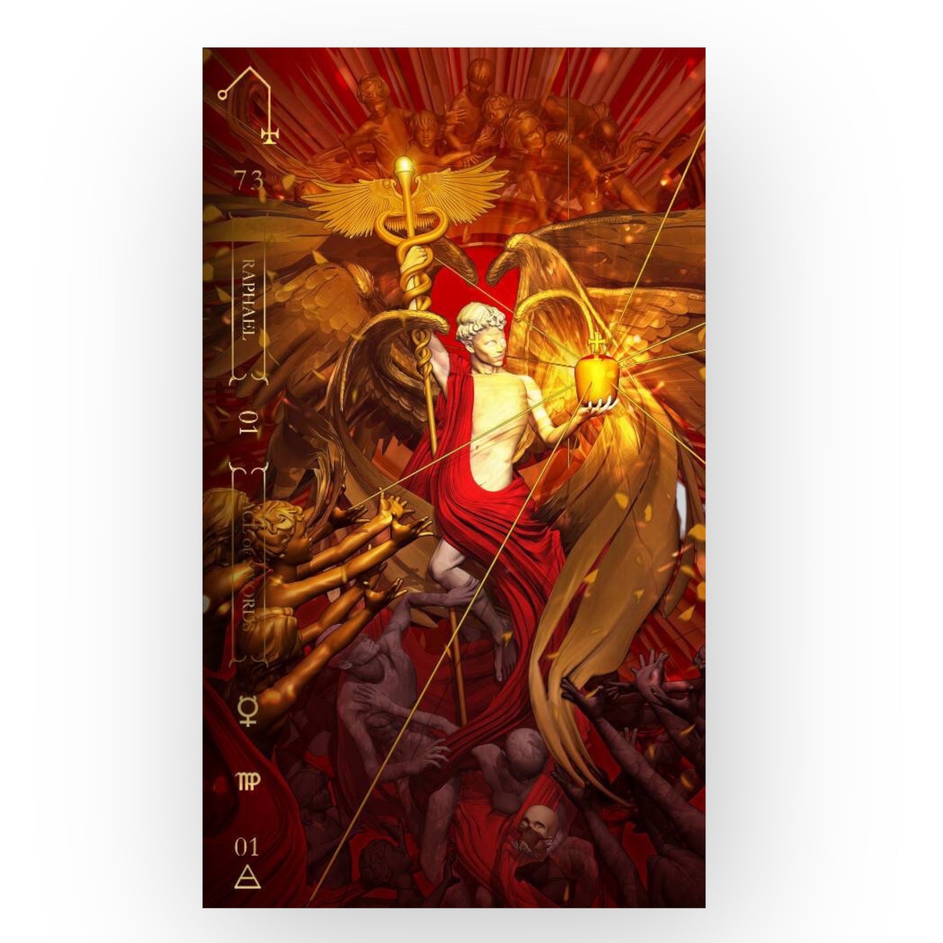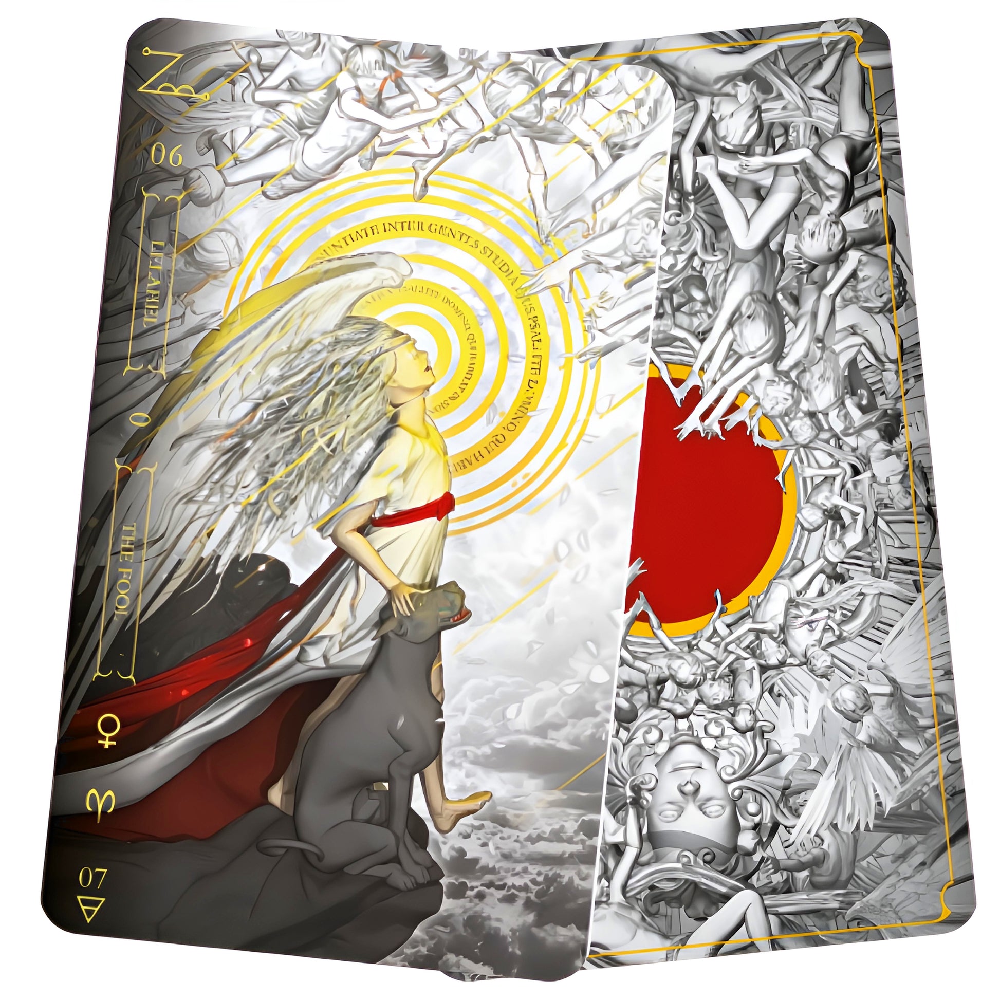 Shining with brilliance, Fabio Listrani's art showcases angels and other forces of light from the ancient lore of Ars Notoria (the fifth book of the Lesser Key of Solomon). This breathtaking tarot mirrors Goetia - Tarot in Darkness and can be used as a complementary deck or as a stand-alone masterpiece. Notoria: Tarot in Light presents radiant divinatory insights and reminds us that, although there is shadow, there is also light.