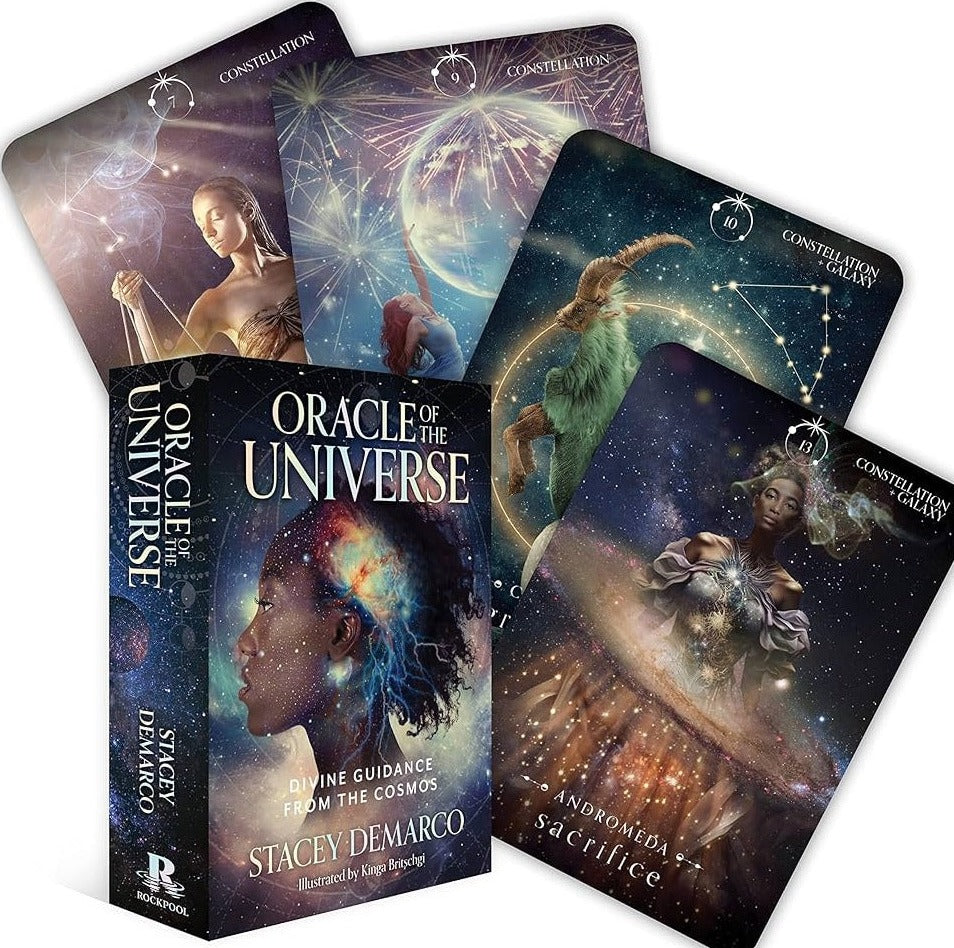 This oracle captures the spiritual wisdom from the known universe: the individual energies, twinkling stars, the greatest fiery suns, mysterious black holes, spinning galaxies, shining constellations, and all the planets great and small.