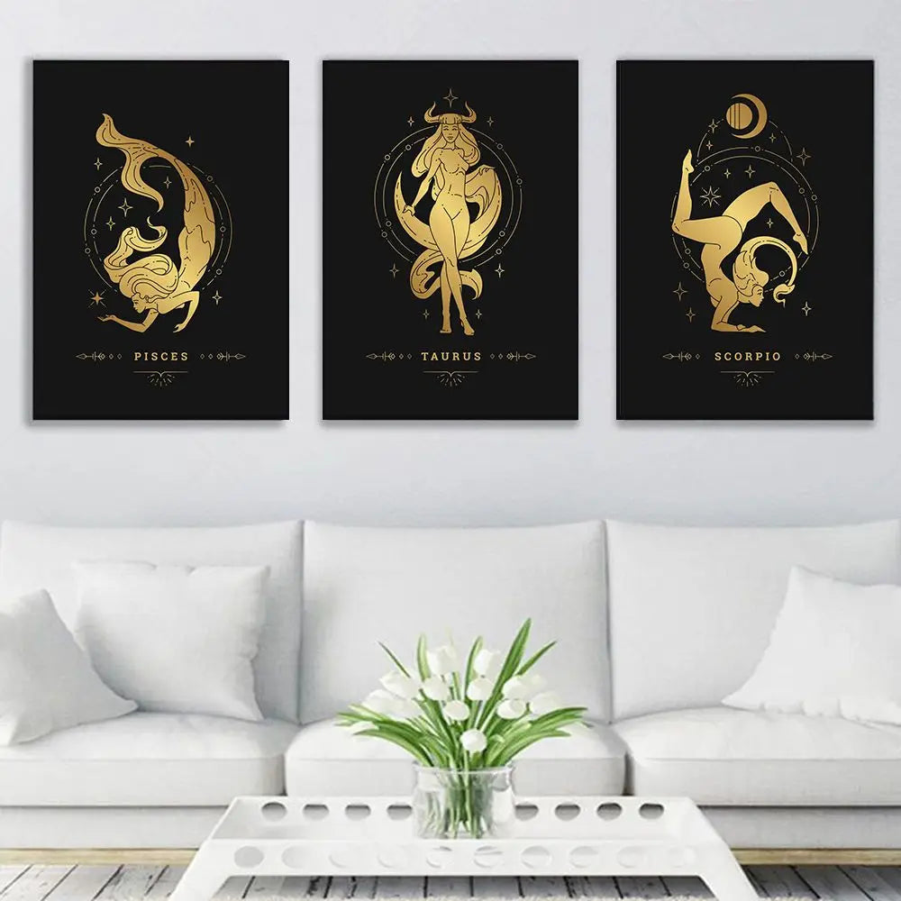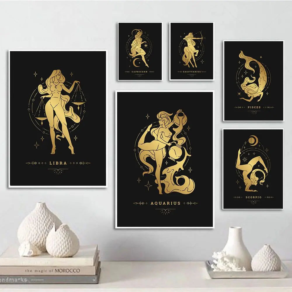 012 - Retro 12 Zodiac Canvas Print Wall Art